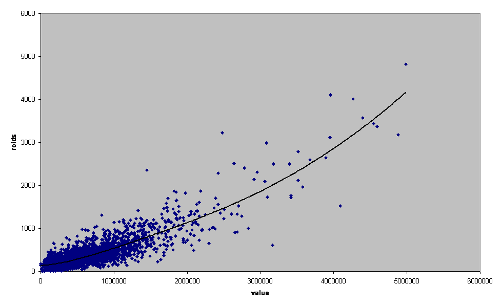| Here is a random graph of value vs roids in the universe as of a few days ago: | ||||||||